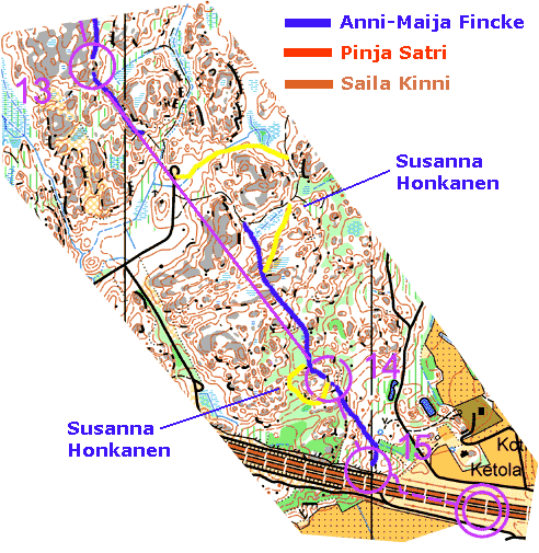 Valitse sarja ja rastivälit, joiden reittipiirroksia haluat tarkastella