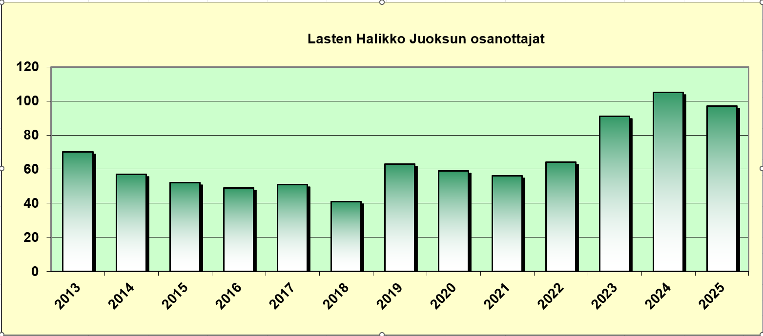 Lasten Halikko-juoksussa voitto meni Suunta Jyväskylän Nuutti Hietalalle, Lynxin Otso Vilhunen jäi neljä sekuntia. Nopein tyttö oli lohjalaisen Hiidenkiertäjien Lotta Nikkinen, Angelniemen Oona Andelmaa ja Aada Tapiola olivat sijoilla 2. ja 3..
