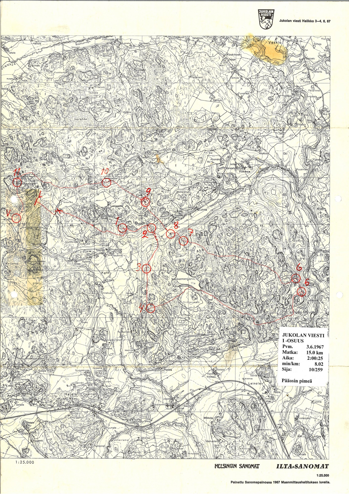Jukola 1967 maasto Halikko-viestin näyttämönä