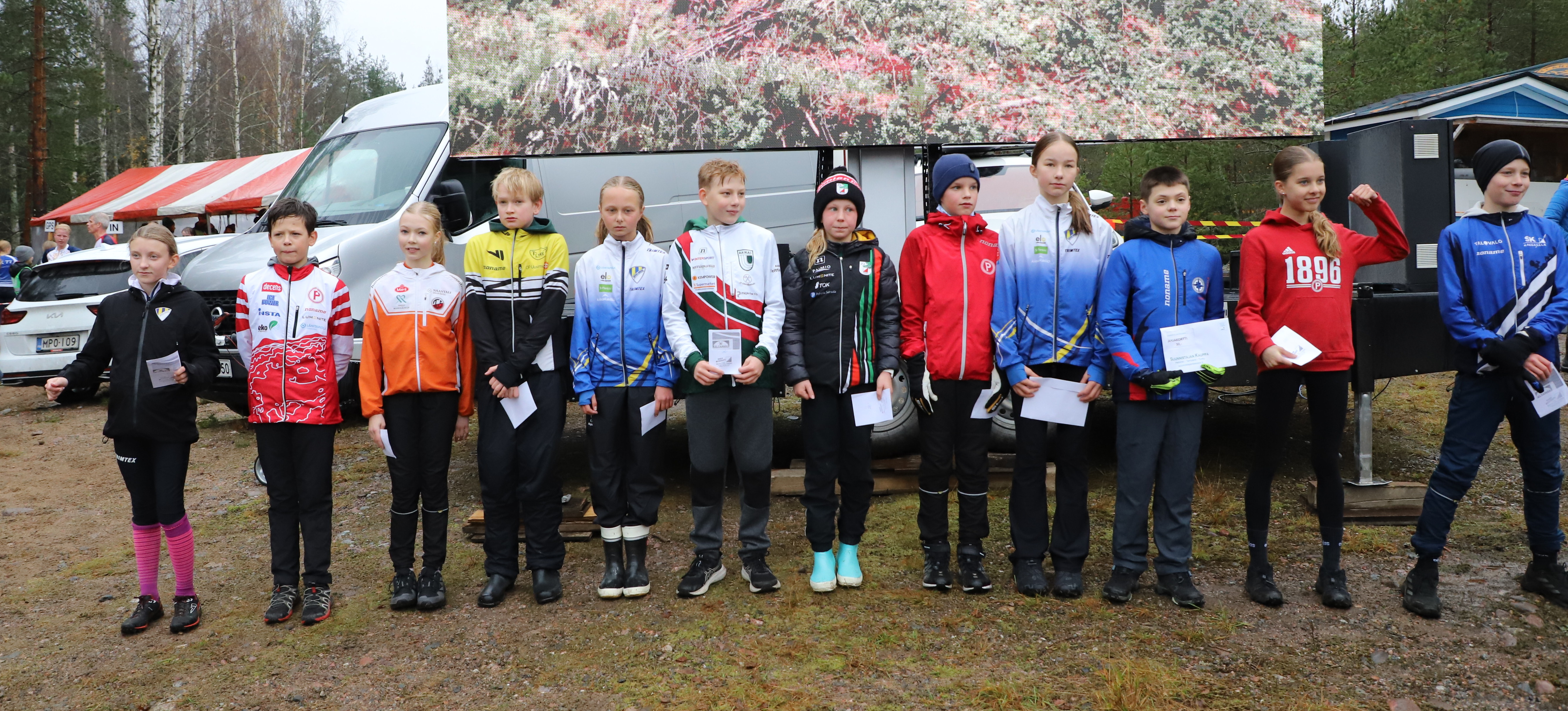 Lasten Halikko-juoksun parhaat oikealta vasemmalle Viljami Liukas Kangasala SK, Vilma Juntunen Tampereen Pyrintö, Kiril Zuikov Suunta Jyväskylä, Miina Kankaanpää Espoon Suunta, Hugo Repo Tampereen Pyrintö,Mya Hartvik Paimion Rasti, Daniel Breilin Asikkalan Raikas, Alli-Ester Vanhakylä Espoon Suunta, Sisu Vilhunen Lynx, Kaisla Toivio Turun Suunnistajat, Veikko Hukkanen Tampereen Pyrintö, Janni Holappa Espoon Suunta